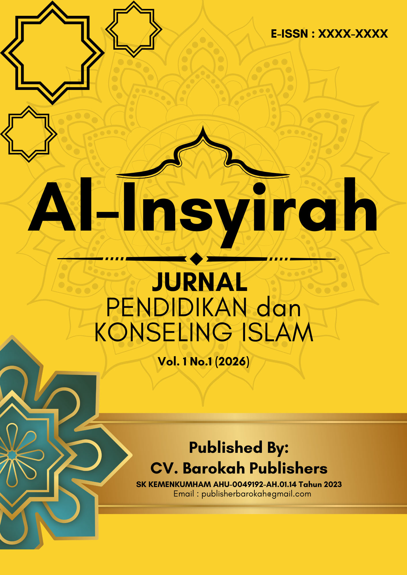 Al-Insyirah: Jurnal Pendidikan dan Konseling Islam. ISSN: XXXX - XXXX (Media Online) merupakan jurnal ilmiah yang berfokus pada publikasi hasil penelitian, kajian konseptual, dan studi literatur di bidang pendidikan Islam dan konseling Islam. Jurnal ini hadir sebagai wadah akademik bagi para peneliti, dosen, praktisi, dan mahasiswa untuk mengembangkan serta menyebarluaskan pemikiran ilmiah yang berbasis nilai-nilai keislaman. Nama Al-Insyirah yang bermakna “kelapangan” mencerminkan harapan bahwa jurnal ini mampu memberikan pencerahan, solusi, dan kontribusi nyata terhadap berbagai persoalan pendidikan dan bimbingan konseling dalam perspektif Islam.